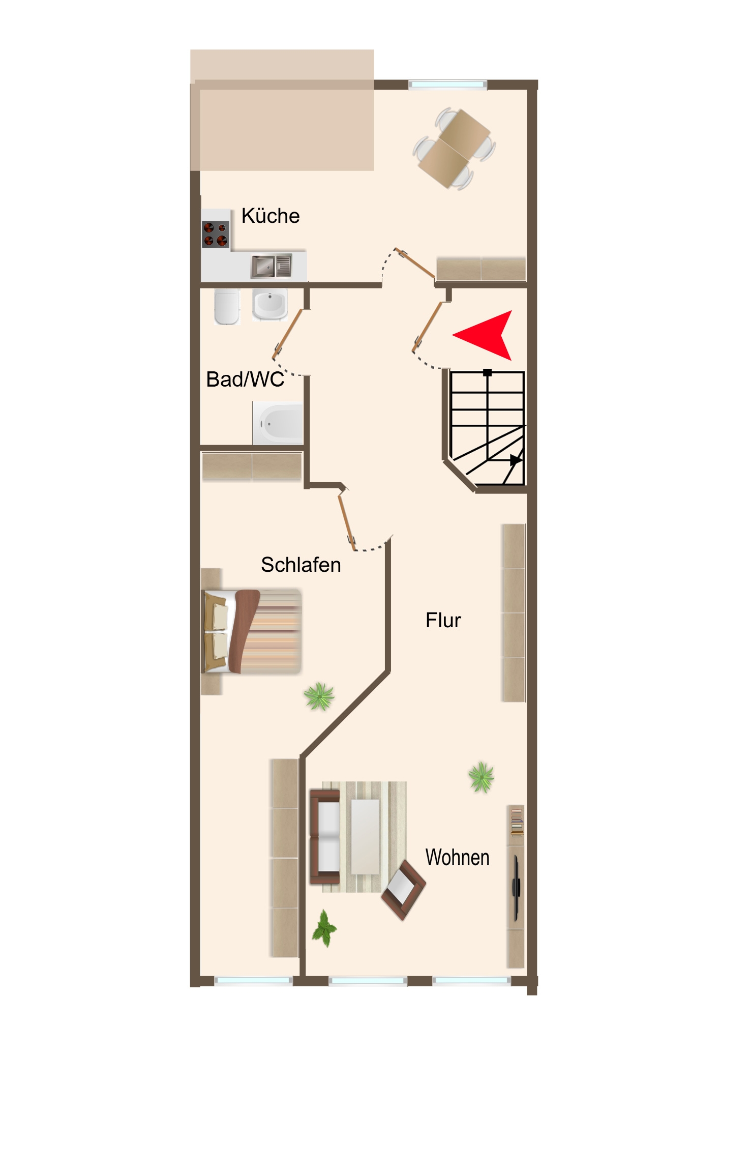 Helle und gemütliche 2-Zimmer-Maisonette-Wohnung. Durch die unmittelbare Nähe zum Klinikum Links der Weser und der guten Verkehrsanbindung ideal als Zweit- oder Studentenwohnung. Beide Räume können auch zu einem großen Raum zusammengefasst werden. Die Wohnung liegt in einem ruhigen und gepflegten Mehrfamilienhaus mit insgesamt acht Parteien.